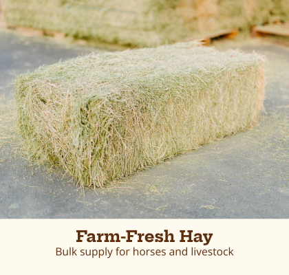 We carry Alfalfa #1, Alfalfa #2, Alfalfa Organic, Timothy, Bermuda, Teff Grass, Orchard Grass, and Chaff. We stock 3-Twine Hay Bales, Pressed Hay Bales, Hay Flakes, Hay Pellets and even Hay Bale and Burlap Sack Rentals.